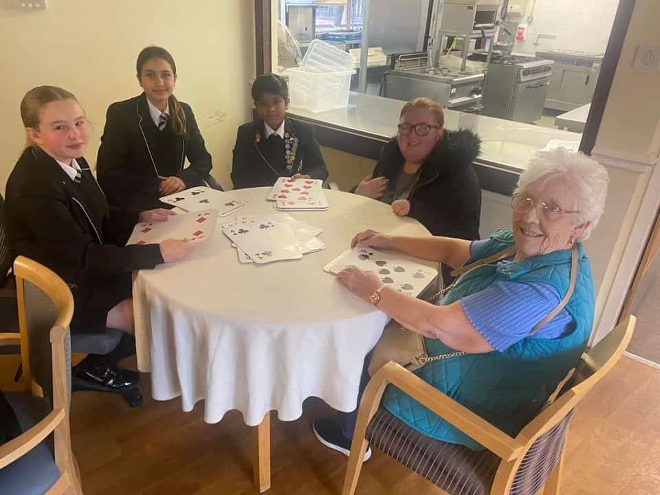 Care home residents have enjoyed performances from the Gospel Choir, Soul Band and Cheerleading team, and playing board games with students.